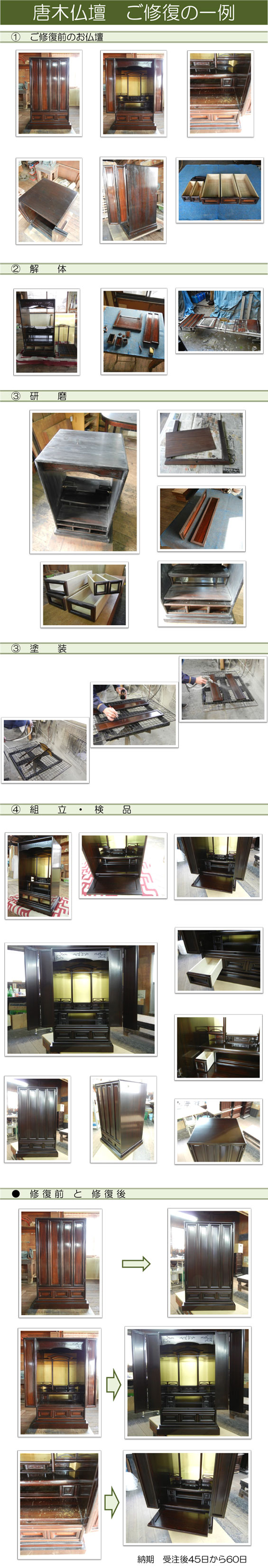 | 5.解体 | 本体の楔留め金具をはずし、お仏壇をほどきます。その後漆をすべて落とします。 |